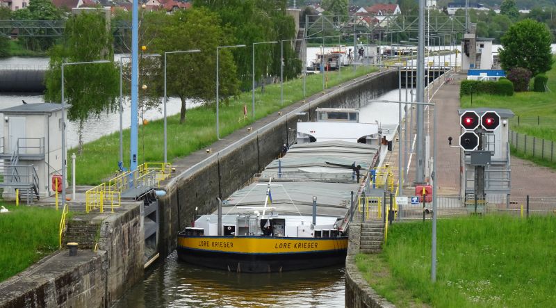 in der Schleuse ist wenn ich komme, schleicht sich von hinten die Lore Krieger