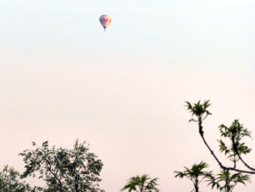Die Sonne geht auf, und direkt vor unsrer Haustür sitzen Entchen. Es gibt sie also noch, die einheimischen Stockenten. Und obendrüber glänzt in der Morgensonne ein Ballon.