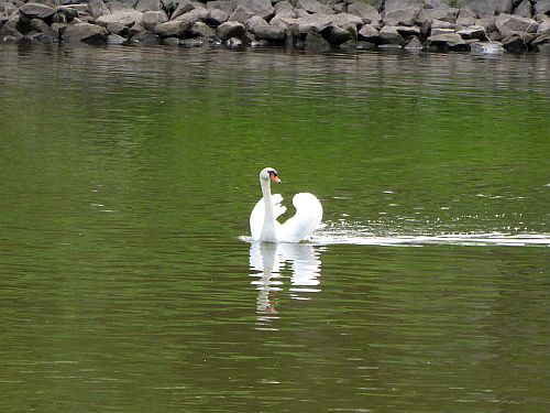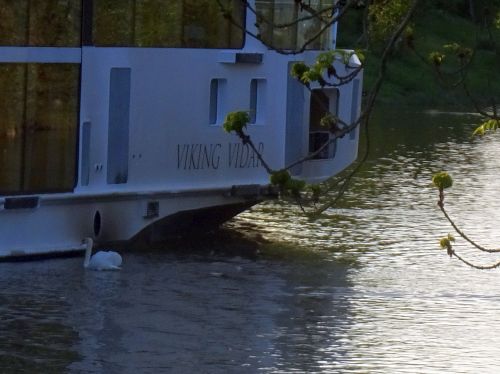 Und als abends die Viking vorbeikommt dreht der Schwan am Rad. Er schwimmt ganz dicht ans Schiff und versucht flatternd auf die Kante zu kommen. Und daheim kümmert sich die Frau um die Brut, während er so nen Mist veranstaltet. Am Ende schwimmt er im Schaum der Schiffsschraube und gibt auf. Alles wird gut.
