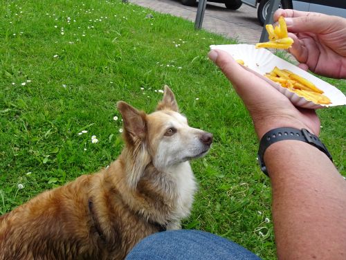 Wildbratwurst und Pommes für jeden. Ja, auch Carl bekam was ab.