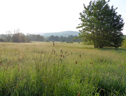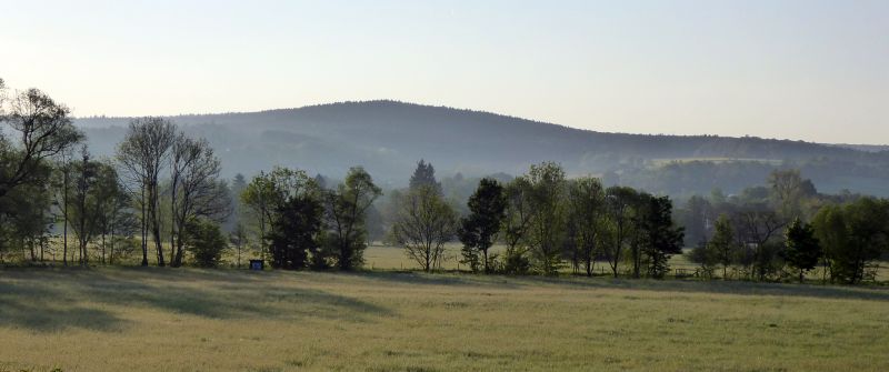 Morgens steigt die Feuchtigkeit des gestrigen kurzen Regens aus den Wiesen. Es