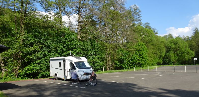Nach dem Frühstück ists dann soweit, wir fahren zum Lidl, den Kühlschrank füllen. Wir sind leergefressen. Und weil wir sowieso unterwegs sind, und es heute sehr warm wird, gehts nach Horbach, denn dort gibts Schatten.