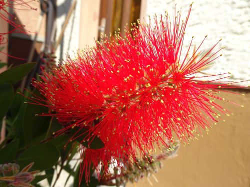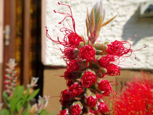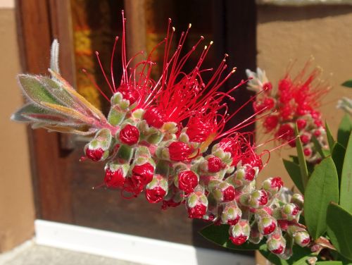 Dort ist bei dem schönen Wetter nicht nur das Gras gewachsen, sondern mein Callistemon hat klammheimlich die Blüten entfaltet. Das ist immer wieder ein Erlebnis.