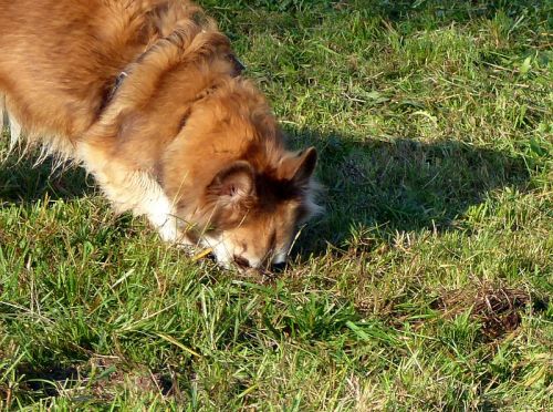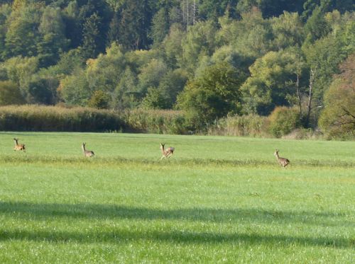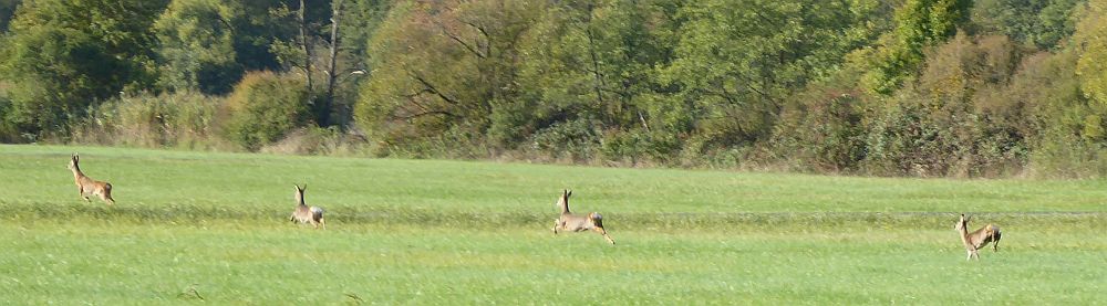 Er ist total gut drauf und buddelt zwischendrin immer wieder nach Mäusen und merkt garnicht, dass hinter ihm die Rehe vorbeispringen.