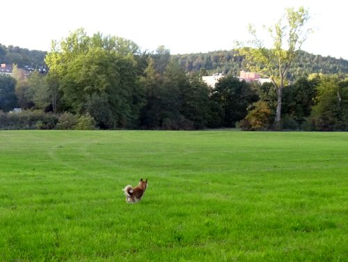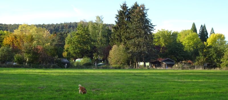 Auch Carl freut sich über den Herbsttag und die Wiese gehört ihm.