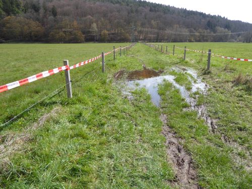 recht nass. Die Wiese vorm Auto hat noch Hochwasser. Und voll ists außerdem. Wir