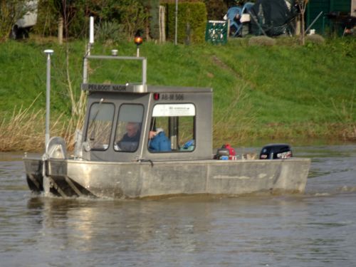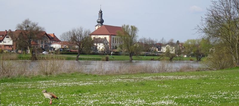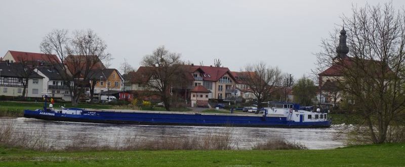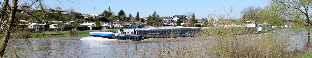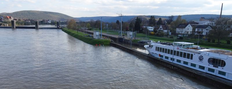 Zur Abwechslung kommt auch ab und zu ein Schiff vorbei, aber es sind wenige, denn der Main ist randvoll und schnell. Die Schifffahrt hat noch Zwangspause.