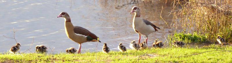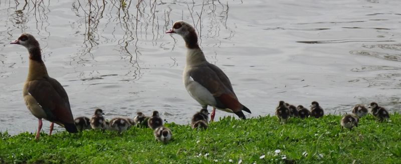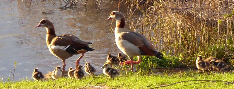 Gegen später machen wir noch einen Spaziergang und treffen die ersten jungen Nilgänschen.