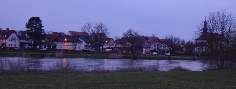 Auch Großwallstadt macht schon die Lichter an, es wird langsam Nacht. Und der Regen ist gottseidank nicht gekommen.