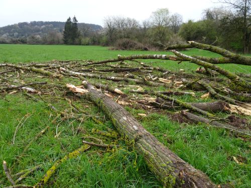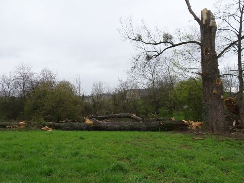 Der abgebrochene Stamm hängt noch genauso wie vor paar Wochen (rechtes Bild). Es sieht einfach nur traurig aus, wenn man hier durch die Mainauen läuft.