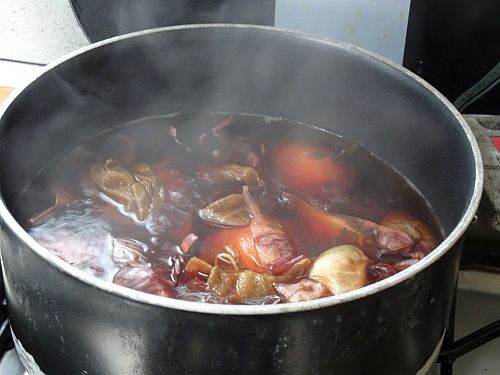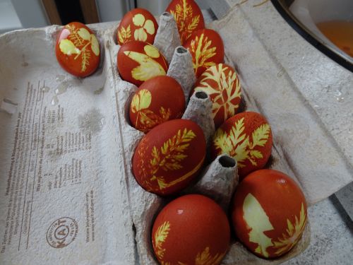 Und denen nehm ich ein wenig Futter weg und mach mich ans Eierfärben, denn am Karfreitag macht man das.
