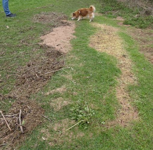 der Boden ziemlich satt nass. Wir sind bereits trotz Keile bissi eingesackt.
