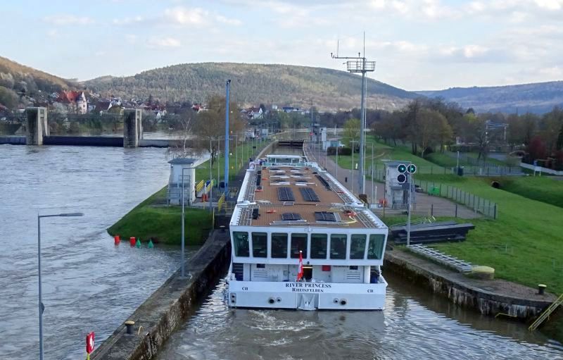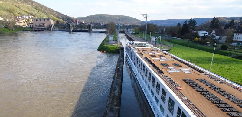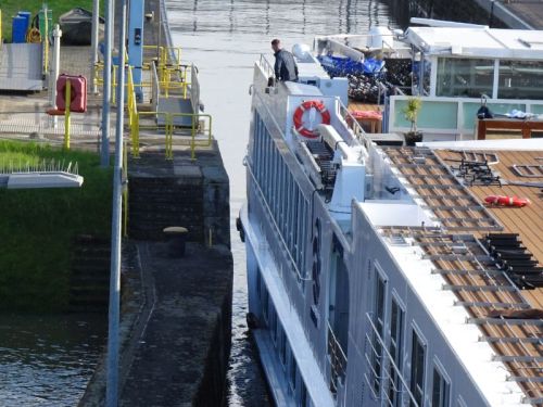 Abends gibts noch ein spannendes Schauspiel, als das Hotelschiff in die Schleuse fährt.