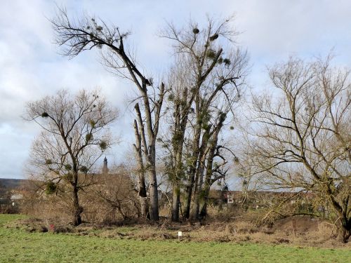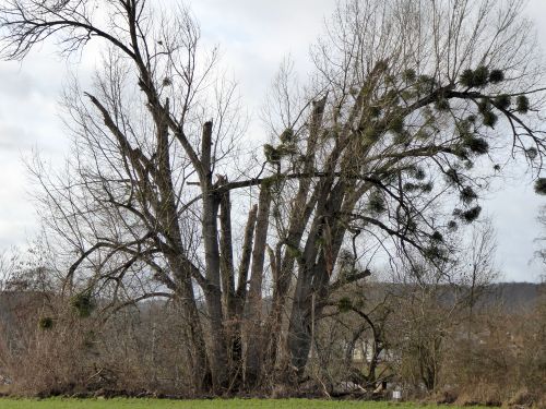 Interessant ist, dass im Naturschutzgebiet die Wackelkandidaten, die wir seit Frühjahr beobachten und die hoch oben frei in Astgabeln schweben, trotz der schweren Stürme der letzten Woche sich noch immer hartnäckig festhalten.