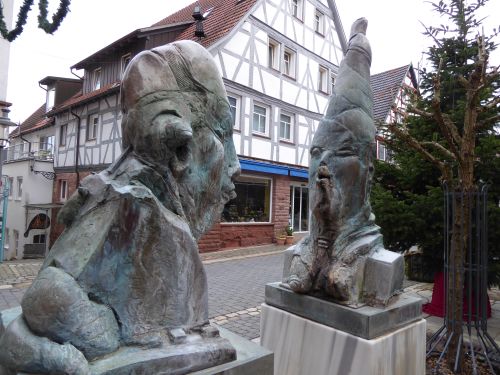 Um die Ecke rum kommen wir dann zum Schalkbrunnen, "Narren im Gespräch" spucken sich gegenseitig ins Gesicht, wenn der Brunnen in Betrieb ist.