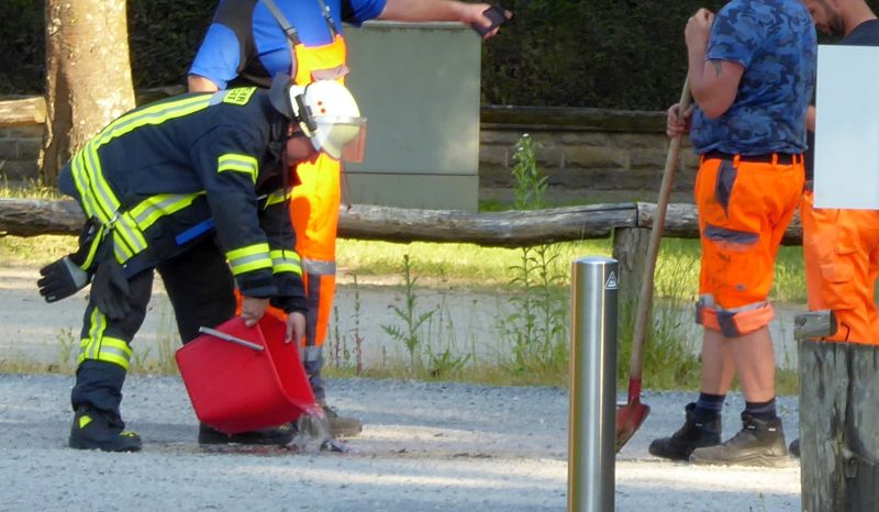 abkippt und die Männer mit Schaufeln etwas rausholen, während schon Krankenwagen