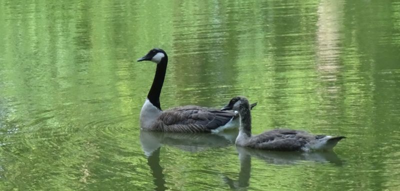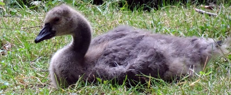 Von den beiden jungen Kanadagänschen ist nur noch eins da, und in der Ecke des Gondelteichs liegt eine tote Nilgans im Wasser, die zweite ist weg. Keine Ahnung, was hier passiert ist.