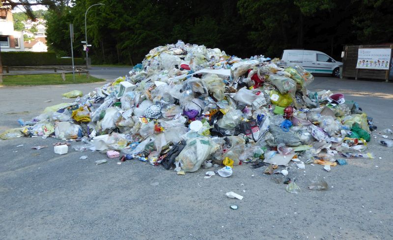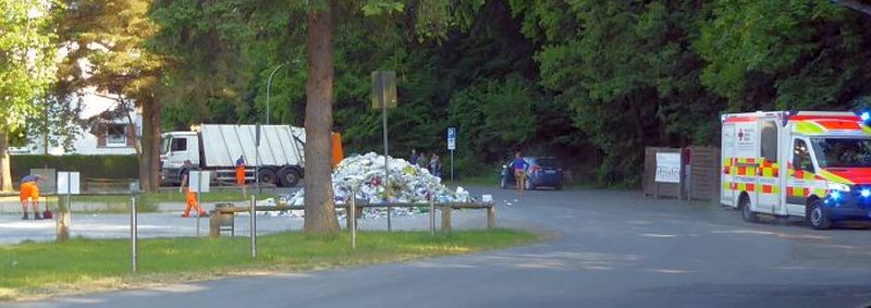 Den Zusammenhang verstehen wir erst, als der Müllwagen die komplette Ladung