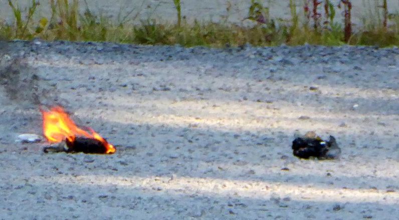 Als das rausgeholte Ding dann plötzlich brennt, wirds klar. Der Müllwagen war