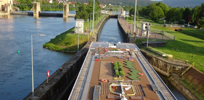 Den Tag vertrödeln wir wie immer auf unsren Sitzmöbeln, gehen ab und zu mal den Hund leeren, und abends machen wir in der Abendsonne noch ein etwas längeres Gassi zur Schleuse.