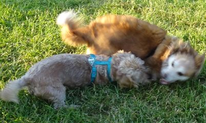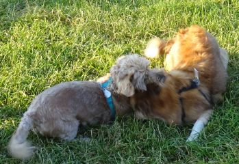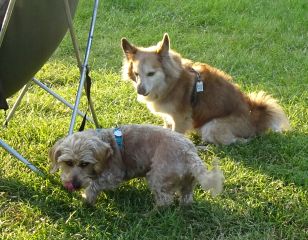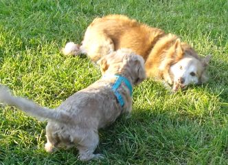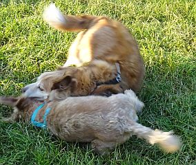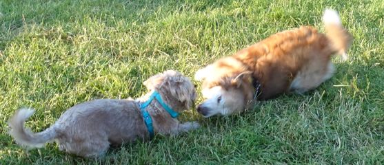 Zurück auf dem Platz hat Carl seinen Spaß mit dem Nachbarshund, dem kleinen Manfred.