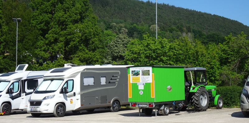 Hier stehen heute nicht nur Womos, sondern auch ein Gespann. Der Hänger ist komplett ausgebaut. Nur die Dusche fehlt.
