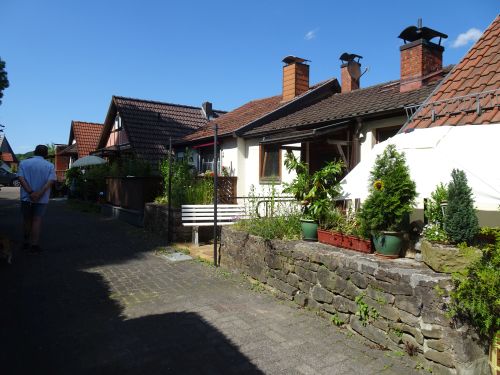 Hier haben die Häuser ihre Terrassen ebenerdig, aber trotzdem im 2. Stock.