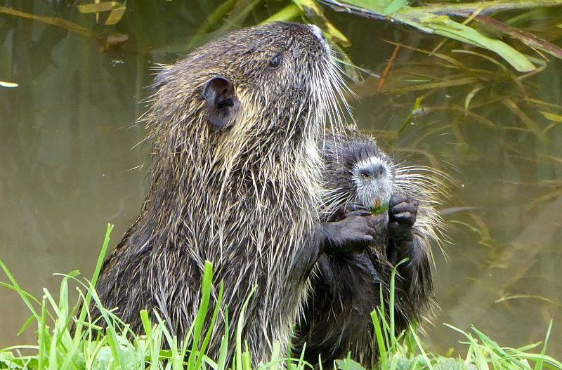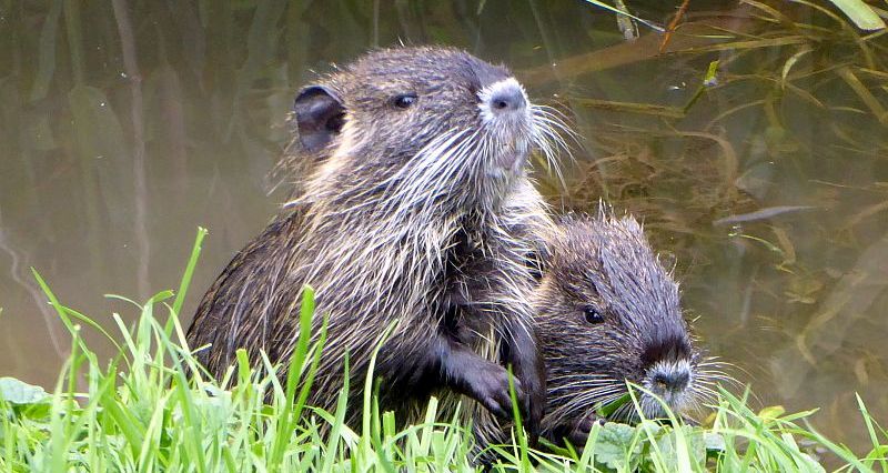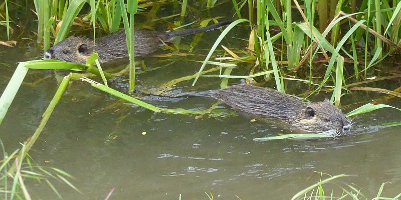 und später treffe ich beim Hundegassi tatsächlich wieder Nutrias, und diesmal auch die Jungen.
