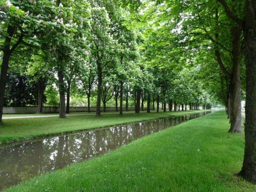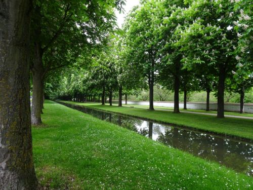 Zuerst laufen wir mal am Schloßgraben durch die Kastanienallee, aber vom Eingang zum Park keine Spur.