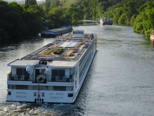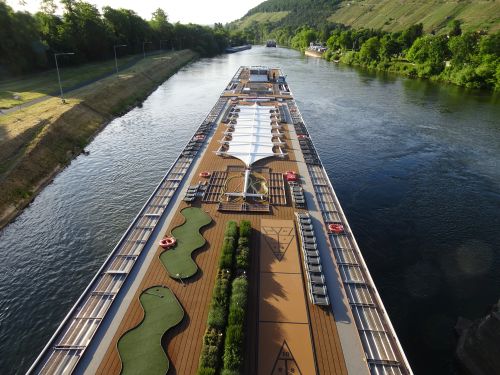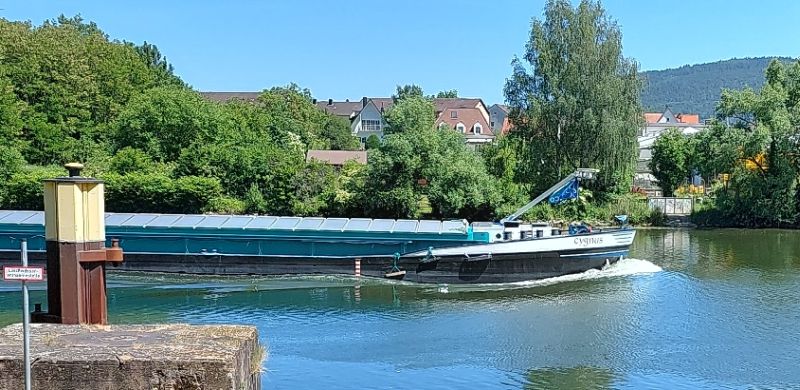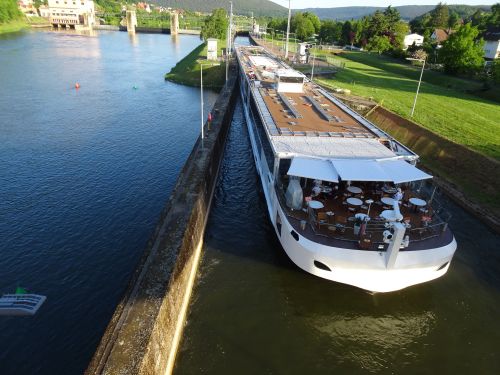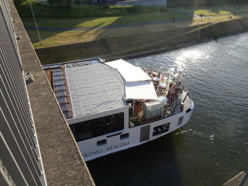 Gegen Abend schauen wir uns noch ein Hotelschiff in der Schleuse an,