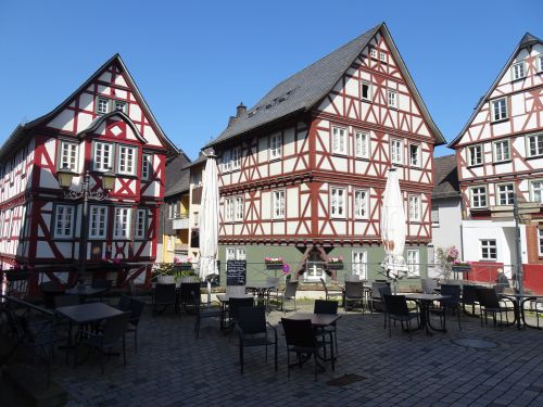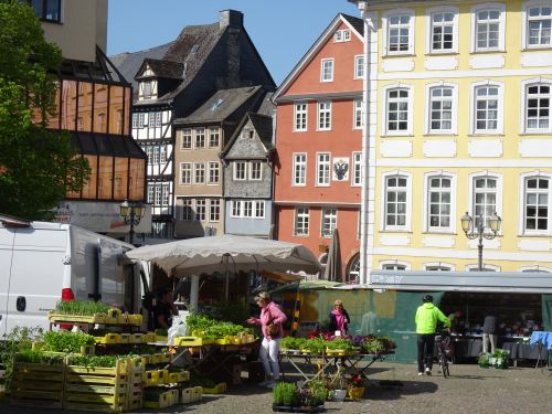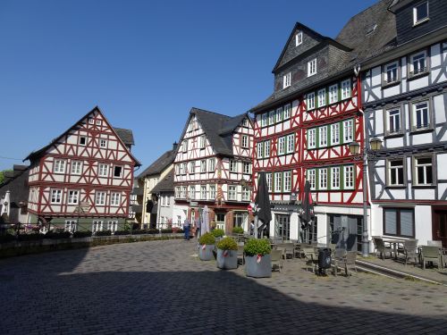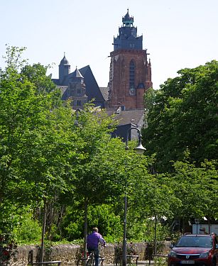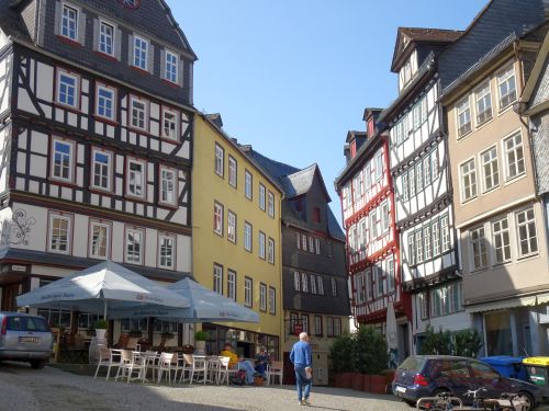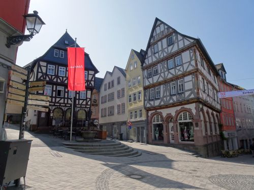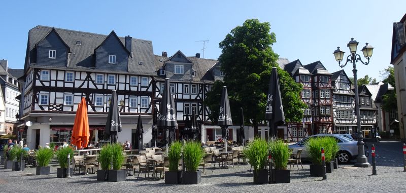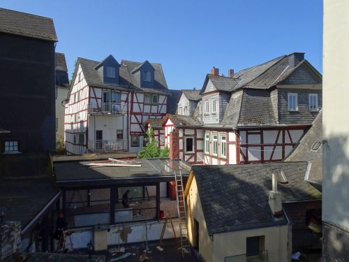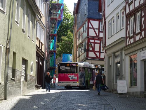 Hier rechts hinterm Dom schaut man auf die oberen Stockwerke der Häuser. Untenrum wird ebenfalls umgebaut. Scheinbar wird Wetzlar überall ausgebessert.