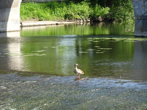Mitten drin sitzt eine Nilgans. Diesjahr verfolgen uns die Gänse.