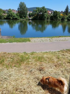 Naja, so ganz geklappt hat es nicht mit dem Warten, bis alle Neucamper wieder daheim sind, denn Pfingstdienstag hats uns wieder gepackt, und wir sind nach Miltenberg gefahren und haben uns an den Main gesetzt.