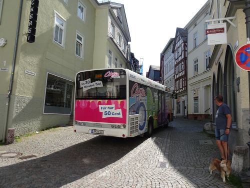 Der Bus muss wohl auch einen Umweg fahren. Um hier durchzukommen, hat der Fahrer was zu tun.