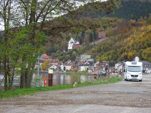 Heute wollen wir mal den Abwassertank reinigen und schütten eine halbe Packung Spülmaschinenspülpulver und zwei Eimer heißes Wasser rein. Das Gemisch wird nun 70 Kilometer durch die Gegend geschaukelt und wir verbringen den Tag in Miltenberg.