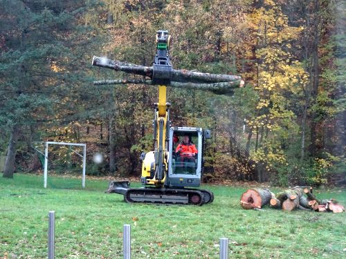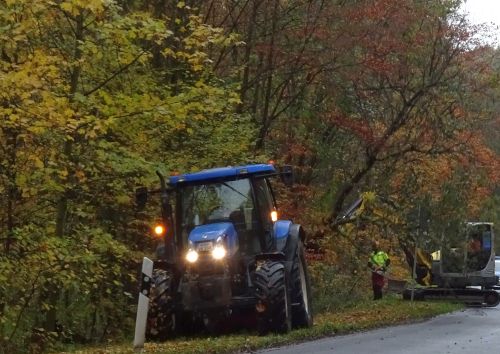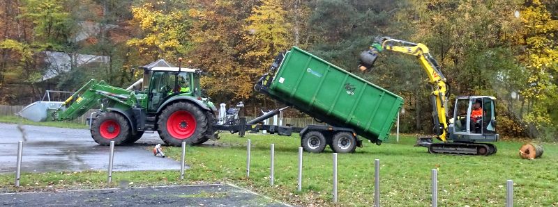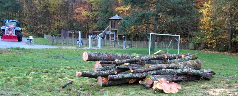 Der Tag verspricht schönes Wetter, aber leider kommen dann graue Wolken mit Regen vorbei. Gleichzeitig kommen Bagger und Laster und Traktoren, und wir werden von den Holzarbeitern mit Baumfällarbeiten unterhalten.