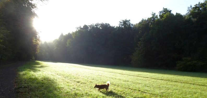 Zuerst mal bei Sonnenaufgang ein ausgiebiges Gassi. Carl ist wieder genauso