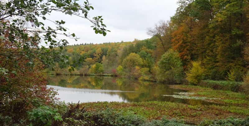 Mein Kopf hat sich etwas beruhigt, die Nase tut aber noch weh, und damit ich abgelenkt bin, fahren wir nun weiter an die Hirschbornteiche und laufen einmal um alle drei herum.