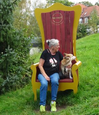 Wir setzen uns jetzt auch, aber nicht auf Betonklötze, sondern auf unsre Sitzmöbel, und genießen den Tag in der Sonne.