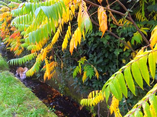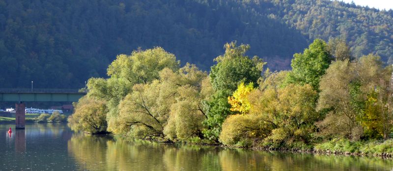 Und am gegenüberliegenden Ufer färbt sich das Gebüsch. Der Herbst ist trotz der