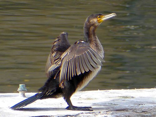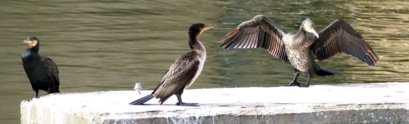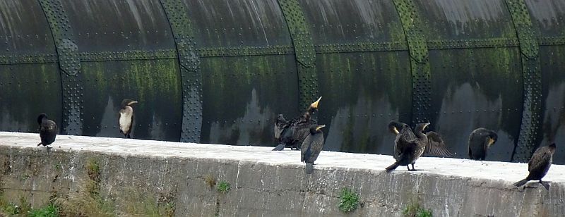 In Freudenberg sitzen die Kormorane ebenfalls auf den Betonklötzen und überziehen sie mit ihrer weißen Kacke, genau wie in Kleinwallstadt.