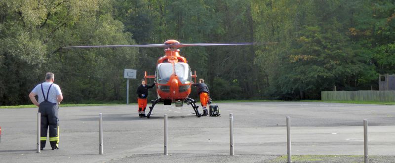 Unser Eckplatz ist frei, und nach dem Essen schlafen meine beiden Männer, als plötzlich das Feuerwehrauto auf den Platz kommt, die Kinder vom Festplatz wegschickt, und dann mit Getöse der Hubschrauber landet.