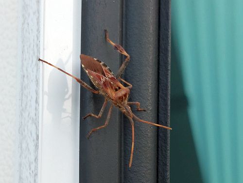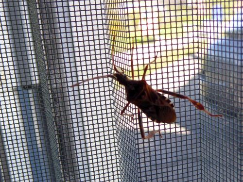 Und hier ersuchen große amerikanische Kiefernwanzen um Asyl. Im Herbst klopfen die Sonnenanbeter und potentiellen Hausbesetzer bei den Wohnmobilisten an, und wollen bei uns überwintern. Sie schaffens immer wieder trotz Fliegentür ins Auto zu gelangen.