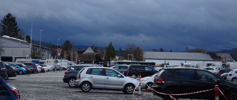 Das Wetter ist nicht wirklich einladend, und da wir nicht wissen, obs nicht noch schlimmer wird, gehen wir gleich mal über den noch geschlossenen Weihnachtsmarkt, damit wir wenigstens mal da waren.