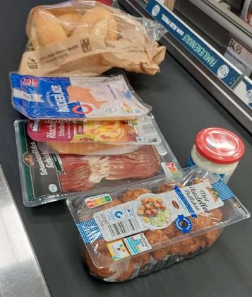 und kriegen fürs gleiche Geld Brötchen, Räucherlachs, Räucherkäse, Schwarzwälder Schinken und 500 g Frikadellen. Damit machen wirs uns im Womo gemütlich.