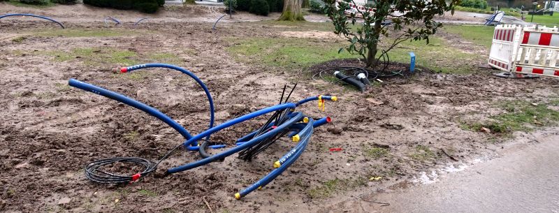 Unser Morgengassi machen wir ins Ort. Dabei sehen wir, dass der Kurpark schon wieder umgebuddelt wird. Scheinbar hat die Firma Strauß nun Bad Orb komplett übernommen.