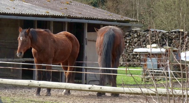 Die Pferde stehen heute nicht auf der Weide am Bach, denn dort ist noch alles aufgeweicht. Sie stehen direkt gegenüber vom Stellplatz und ich hab sie die ganze Zeit im Blick.