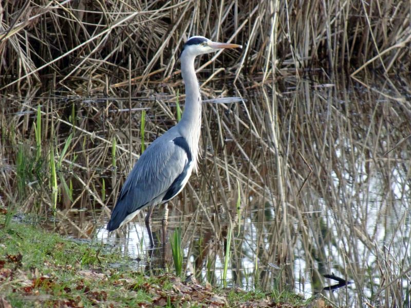 Seerosenteich herum begegnet uns dieser hübsche Reiher.