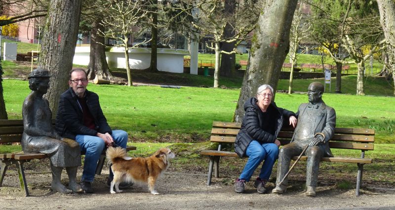 Und bevor die Sonne es sich anders überlegt, und Carl auf den Gedanken kommt, heute wieder zu hickeln, gehen wir in den Kurpark,