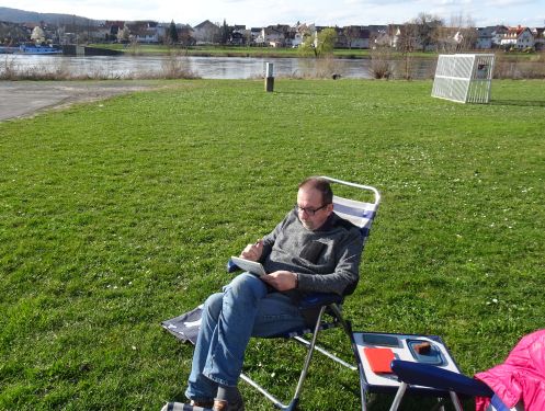 Heute ists Wetter wieder wunderbar, und wir wollen nach dem Frühstück weiterfahren. Aber es ist Saisonbeginn, überall ists voll, Horbach ist zugerammelt mit Wohnwagen und PKWs, die alle gemeinsam feiern, und sogar in Rodenbach gibts keinen Platz mehr, und wir fahren wieder heim.